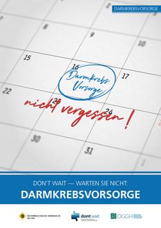 Seit über 20 Jahren appellieren die Österreichische Krebshilfe und die Österreichische Gesellschaft für Gastroenterologie und Hepatologie (ÖGGH) an Österreichs Frauen und Männer, die Möglichkeit einer effektiven Darmkrebsvorsorge wahrzunehmen. „Mit dem Slogan Don’t wait – Warten Sie nicht wollen wir auch heuer wieder der Bevölkerung deutlich machen, dass es Leid vermeiden und Leben retten kann, wenn die Möglichkeiten einer effektiven Darmkrebsvorsorge genutzt werden,“ so Krebshilfe-Präsident Univ.-Prof. Dr. Paul Sevelda. „Aber gleichzeitig richtet sich der Slogan auch an die gesundheitspolitisch Verantwortlichen, das geplante Darmkrebs-Früherkennungsprogramm raschest umzusetzen.“